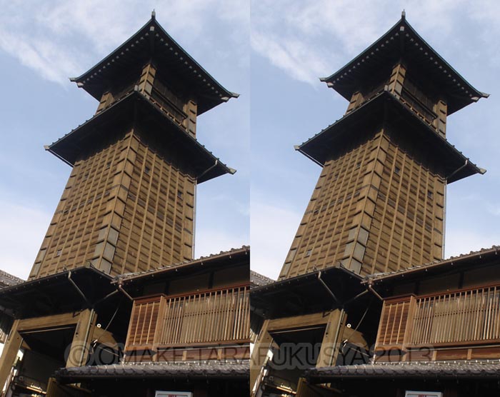 左右の傾き右の塔の傾きが強く見えますが、実はまったく同じ。錯視現象です。