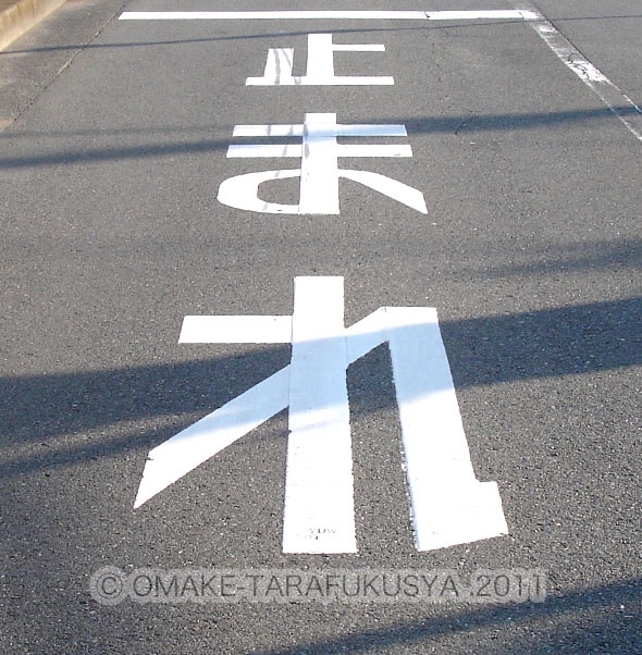 道路指示表記道路にある「止まれ」。これはある種のアナモルフォーズです。